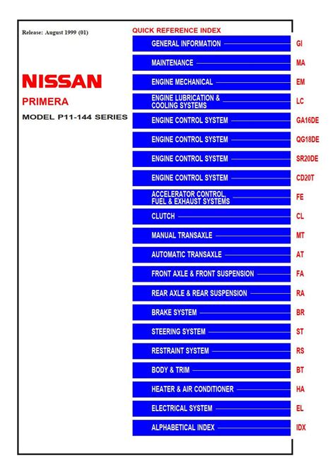 Currently you are looking regarding an Nissan Primera 2000 Factory Service Repair Manual example that we provide here inside some kind of document formats many of these as PDF, Doc, Power Point, as well as images that will make it simpler for you to create an Nissan Primera 2000 Factory Service Repair Manual yourself. For a better look, you are able to open several examples below. All of the examples about Nissan Primera 2000 Factory Service Repair Manual with this website, we get from several sources so you may create a better document of your own.If the search you obtain here does not match what you are looking for, please make use of the research feature that we have got provided here. You are usually free to download anything at all that we provide here, expense cost you typically the slightest.